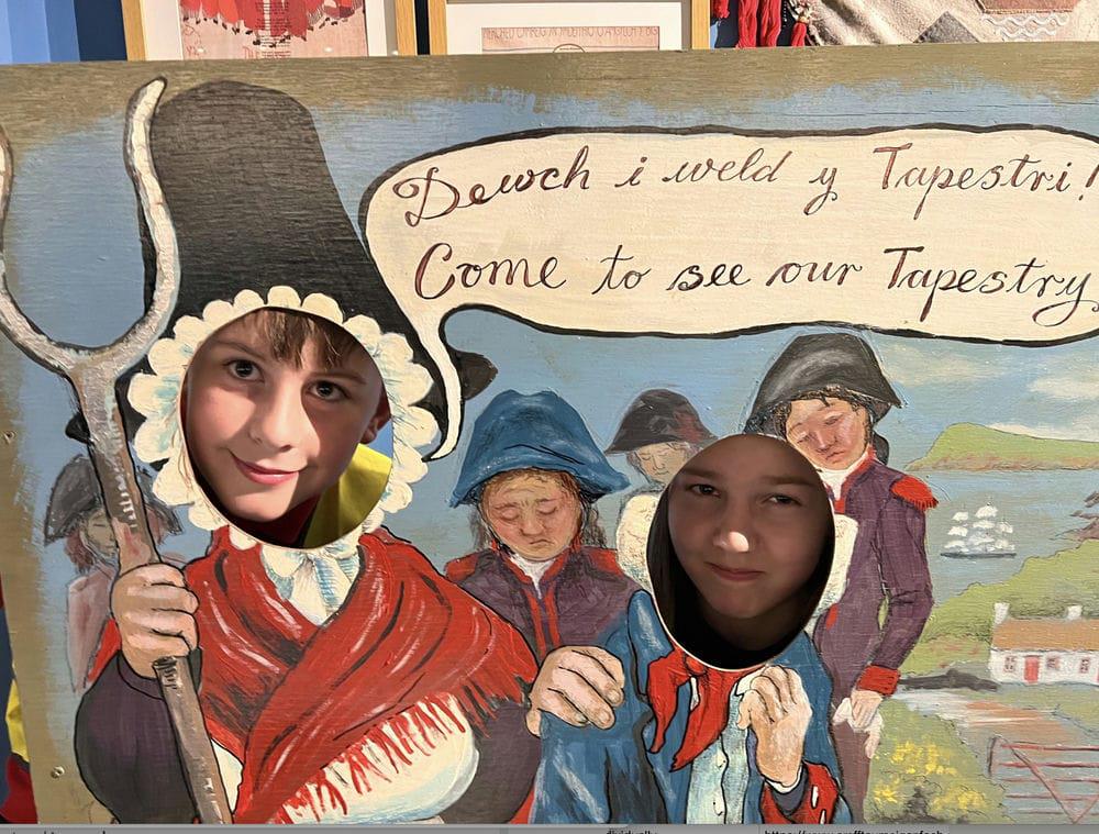 BWRLWM Year 6 educational walk around Fishguard to learn about local heroes. This photo was taken during a visit to the tapestry of the history of the Landing of the French in the Town Hall.